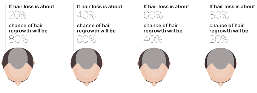 • If hair loss is about 20%, chances of hair regrowth will be 80%